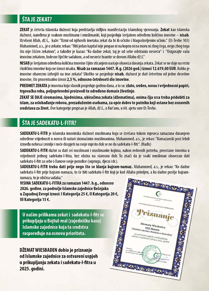 DŽEMAT WIESBADEN dobio je priznanje od Islamske zajednice za ostvareni uspjeh u prikupljanju zekata i sadekatu-l-fitra u 2025. godini.